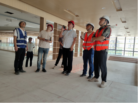 相關人員一行先來到O38-1-1地塊中學工程現場,查看了男生宿舍、圖書館、廚房和車庫等區域的消防設施,針對廚房動火區和非動火區之間設置的防火閥及其兩側有效范圍內的消防規定、圖書館擋煙垂壁的設置規范和開啟條件等各工程細部深入交換了意見。