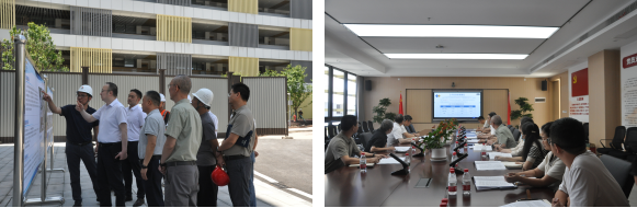 調(diào)研團(tuán)隊(duì)首先深入項(xiàng)目現(xiàn)場(chǎng),實(shí)地查看項(xiàng)目施工進(jìn)度、安全文明管理及智能建造技術(shù)應(yīng)用等情況。兩江建設(shè)公司相關(guān)負(fù)責(zé)人就項(xiàng)目概況、建筑布局、建筑結(jié)構(gòu)特點(diǎn)等內(nèi)容作詳細(xì)介紹。